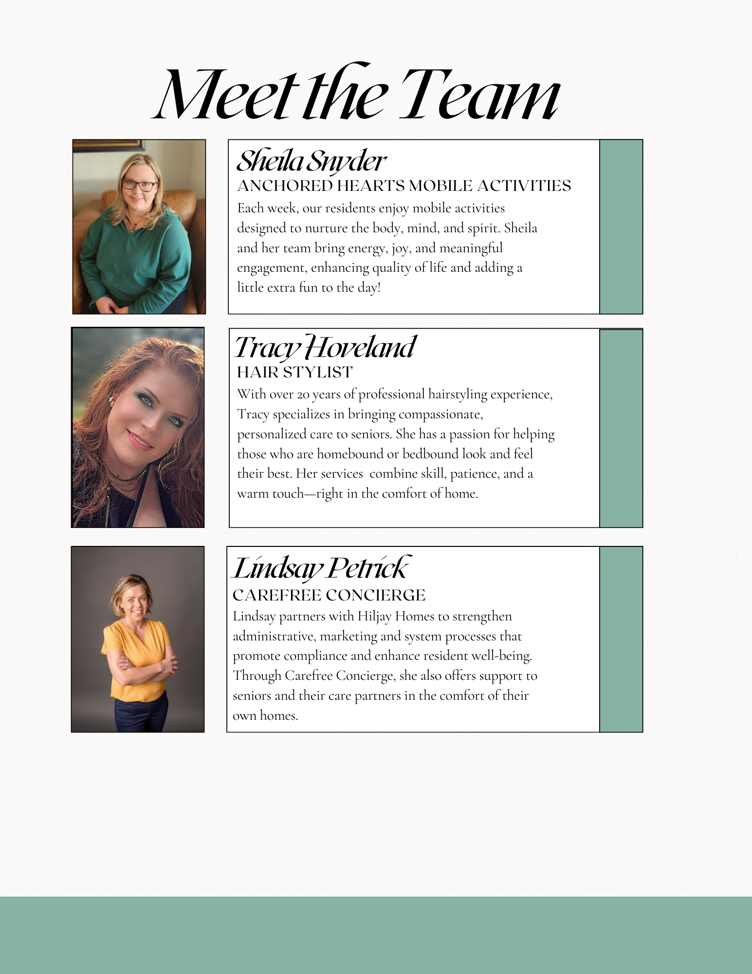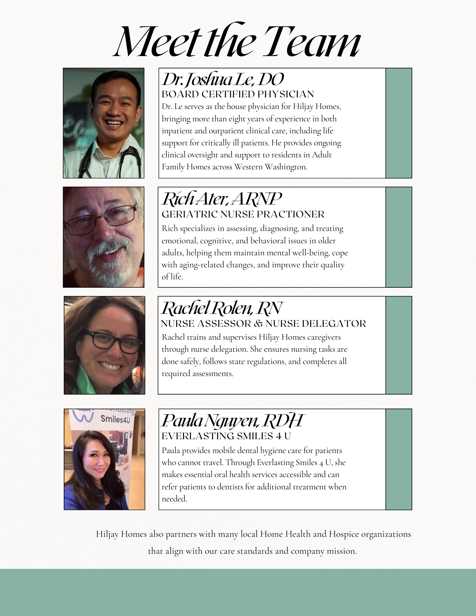 At Hijay Homes, every team member brings a unique perspective to care - grounded in a shared passion for meaningful work and real human connection.